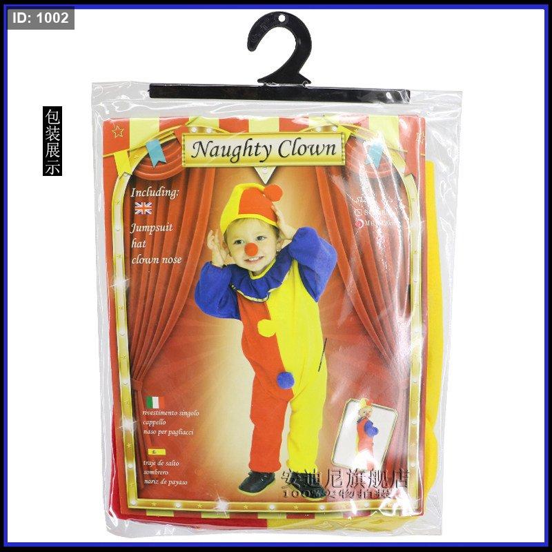 المنتج الموضح في الصورة هو زي مهرج للأطفال معروض في عبوة بلاستيكية.