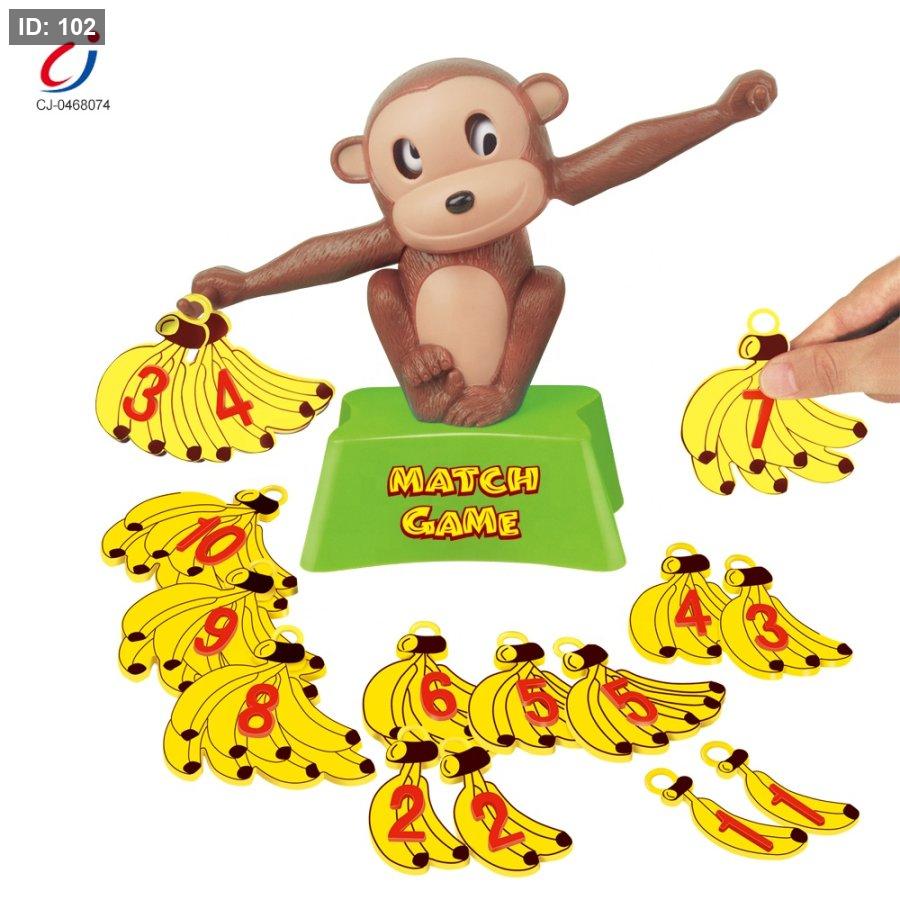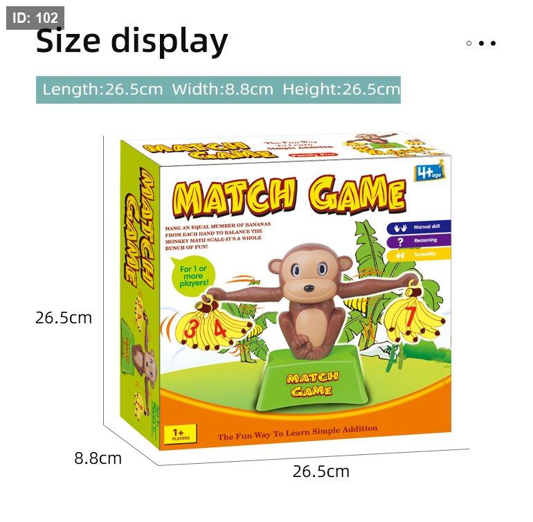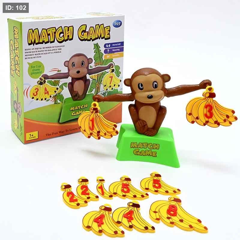 طريقة اللعب: يقوم اللاعبون بتعليق موزات مرقمة أو رموز (قرود صغيرة في بعض الإصدارات) على يدي القرد. عندما يكون مجموع الأرقام متساويًا على كلا الجانبين، تتوازن يدي القرد وينظر إلى الأمام مباشرة. أما إذا كانت الأرقام غير متساوية، فإن القرد يفتح عينيه بشكل متقاطع وذراعاه لا يتوازنان، مما يشير إلى الحاجة لإعادة المحاولة.