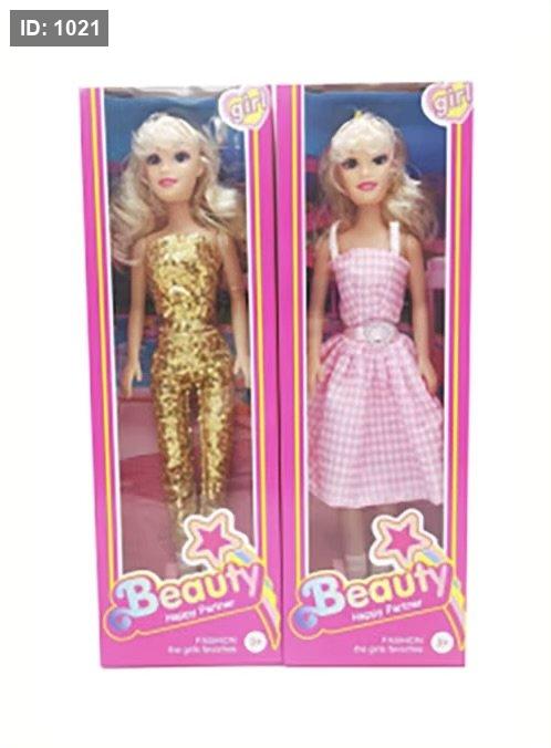 تأتي الدمية بشعر أشقر طويل ومكياج بارز.