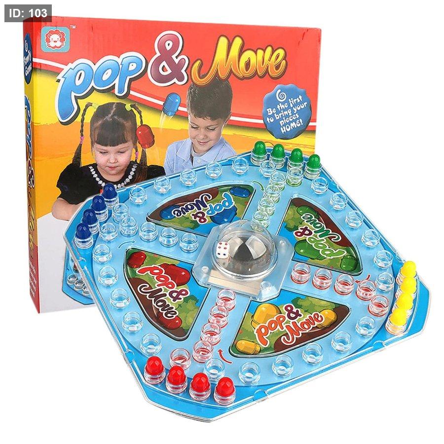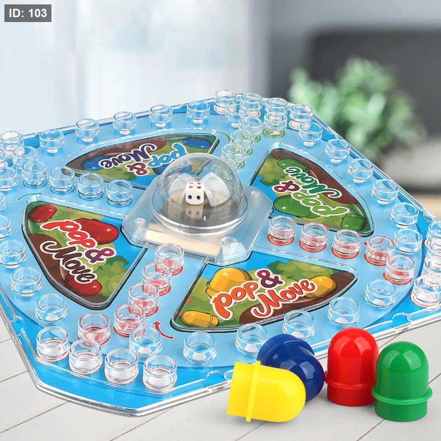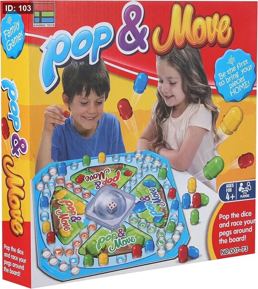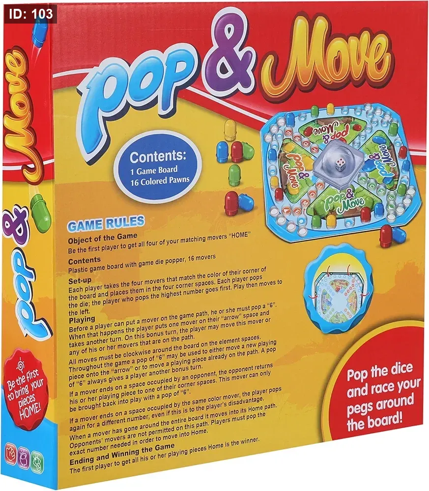 لعبة Pop & Move هي لعبة لوحية عائلية كلاسيكية (تُعرف أيضًا باسم لودو أو Trouble) حيث يتسابق اللاعبون لإيصال جميع بيادقهم إلى منطقة النهاية الآمنة.