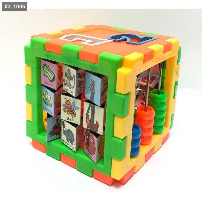 المنتج الموضح في الصورة هو لعبة مكعب للأطفال مكونة من قطع بناء متشابكة وملونة.