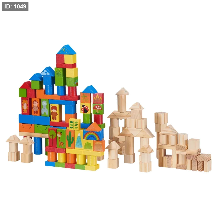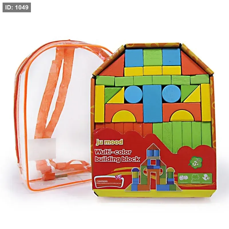 هذه مجموعة مكعبات بناء خشبية ملونة تحمل العلامة التجارية "Ju mood". تساعد هذه الكتل في تطوير المهارات الحركية والمعرفية الدقيقة لدى الأطفال.