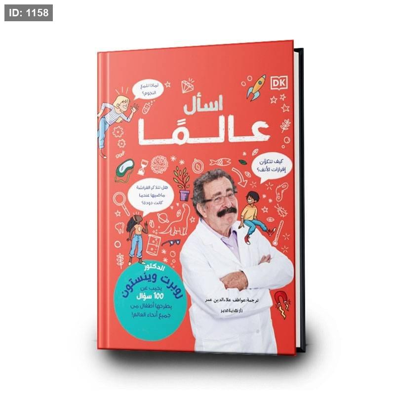 الكتاب المعروض في الصورة هو كتاب "اسأل عالمًا" من ناشيونال جيوغرافيك للأطفال، من تأليف الدكتور روبرت وينستون، وترجمة عواطف علاء الدين عمر، ونشر دار نهضة مصر.