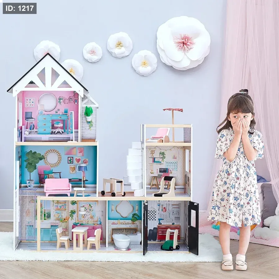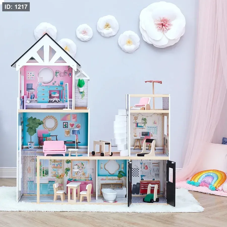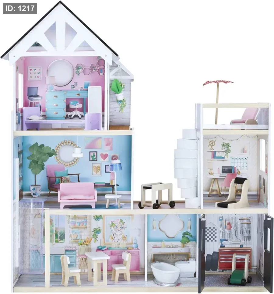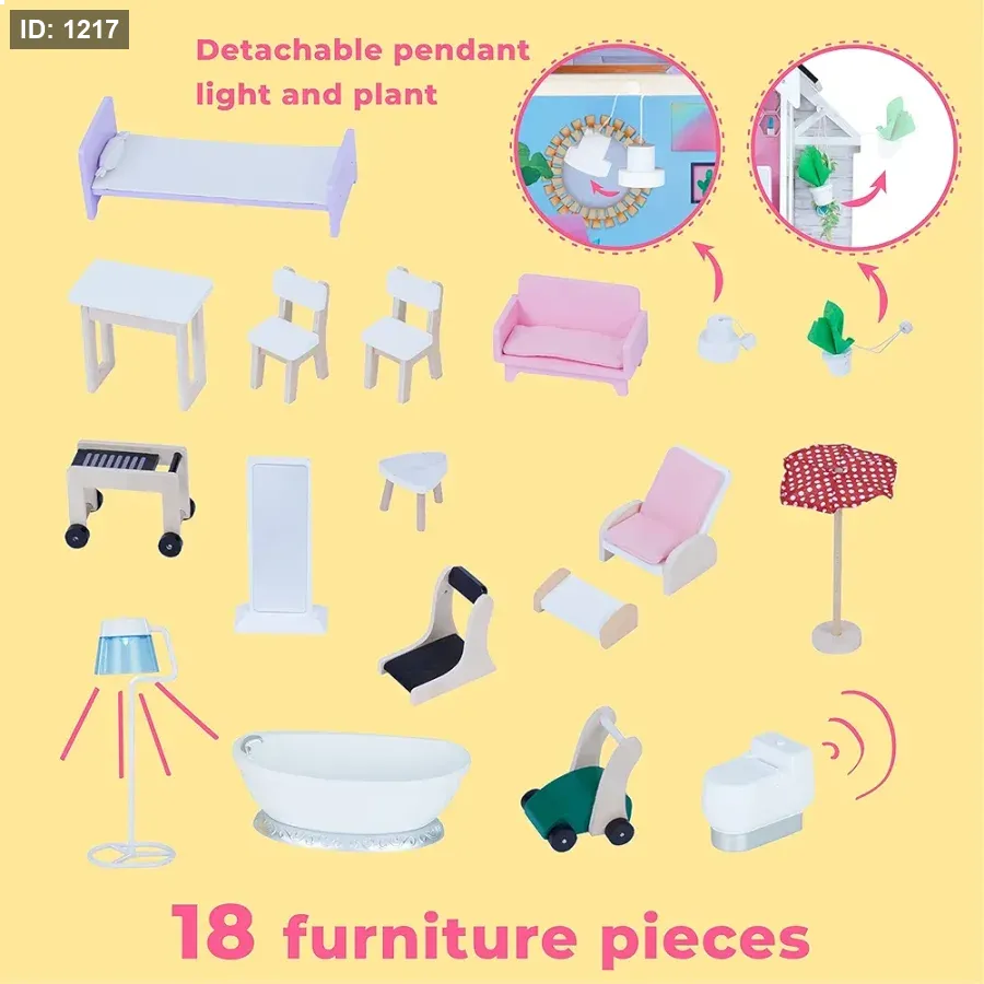 الملحقات: يأتي مع مجموعة واسعة من الأثاث المصنوع من البلاستيك بتفاصيل خشبية لتجربة لعب واقعية.