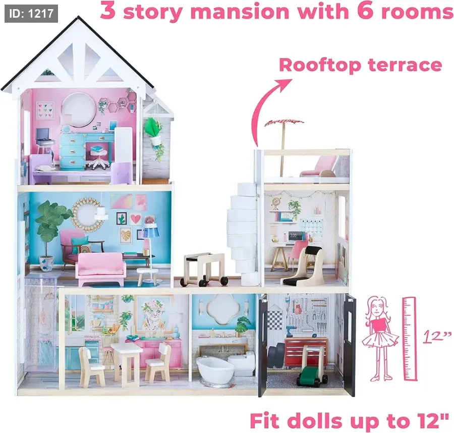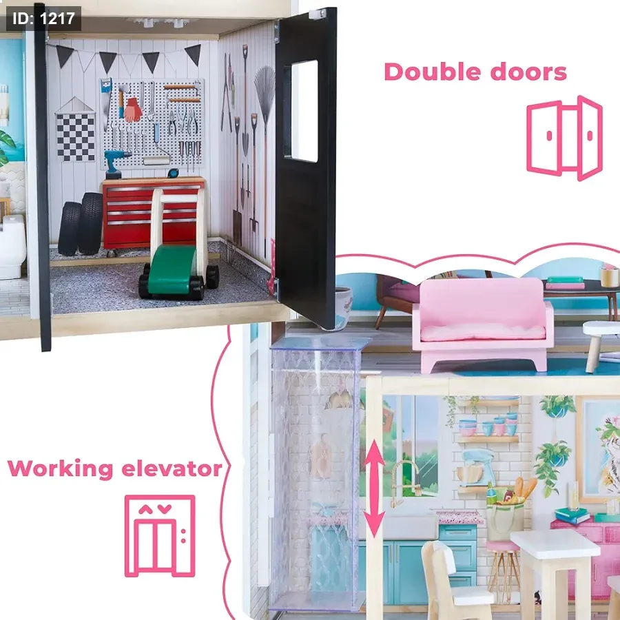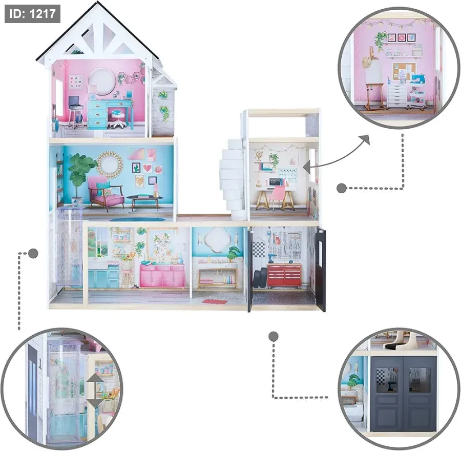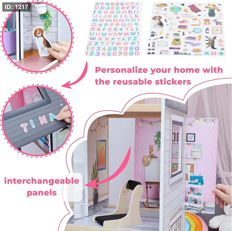 الملحقات: يأتي مع مجموعة واسعة من الأثاث المصنوع من البلاستيك بتفاصيل خشبية لتجربة لعب واقعية.