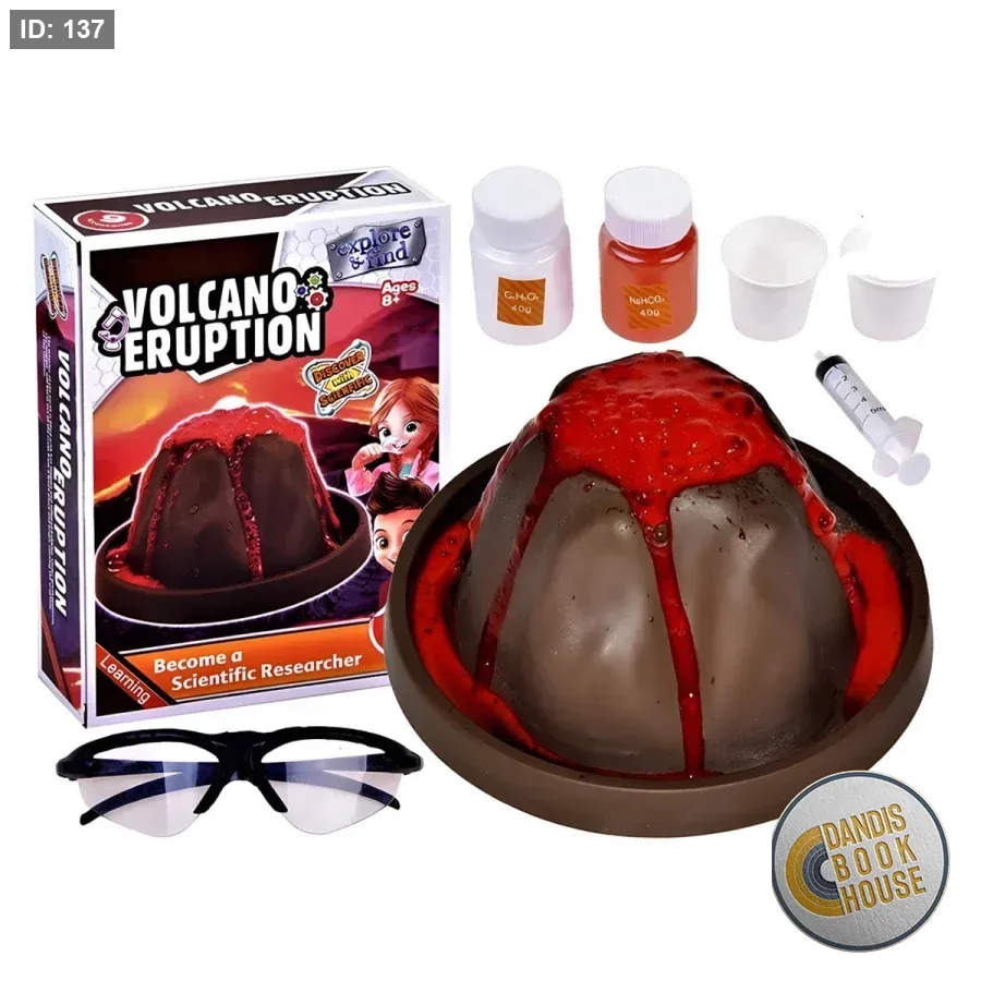 هذه مجموعة "استكشف واكتشف" التعليمية لثوران البركان، وهي لعبة تجريبية علمية مصممة للأطفال.