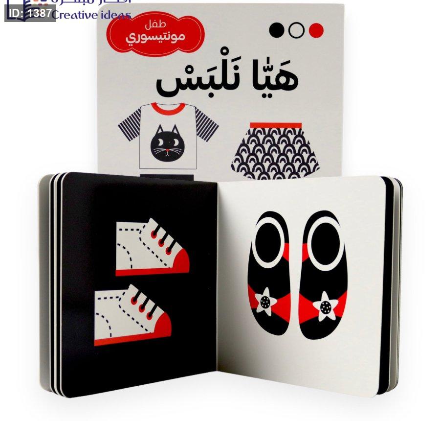 الكتاب المعروض في الصورة هو جزء من سلسلة "طفل مونتيسوري"، وعنوانه تحديدًا هو "هيا نلبس".