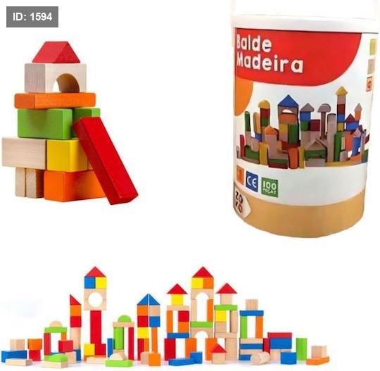 يحتوي على 100 مكعب خشبي لبناء وتركيب الأشكال.