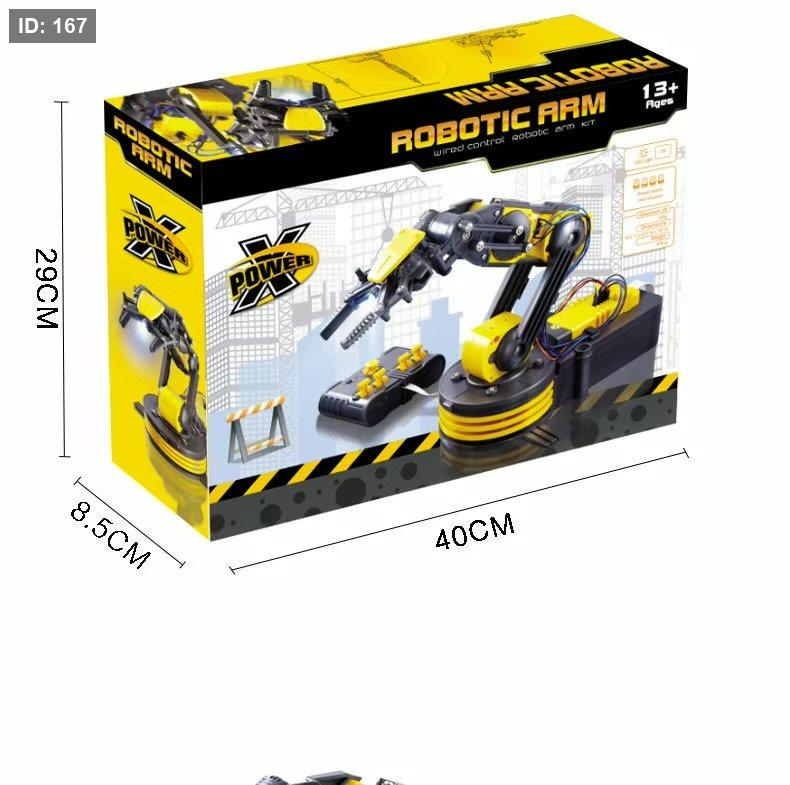 هذا طقم ذراع روبوت تعليمي يتم التحكم فيه سلكيًا.