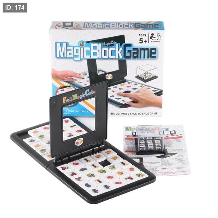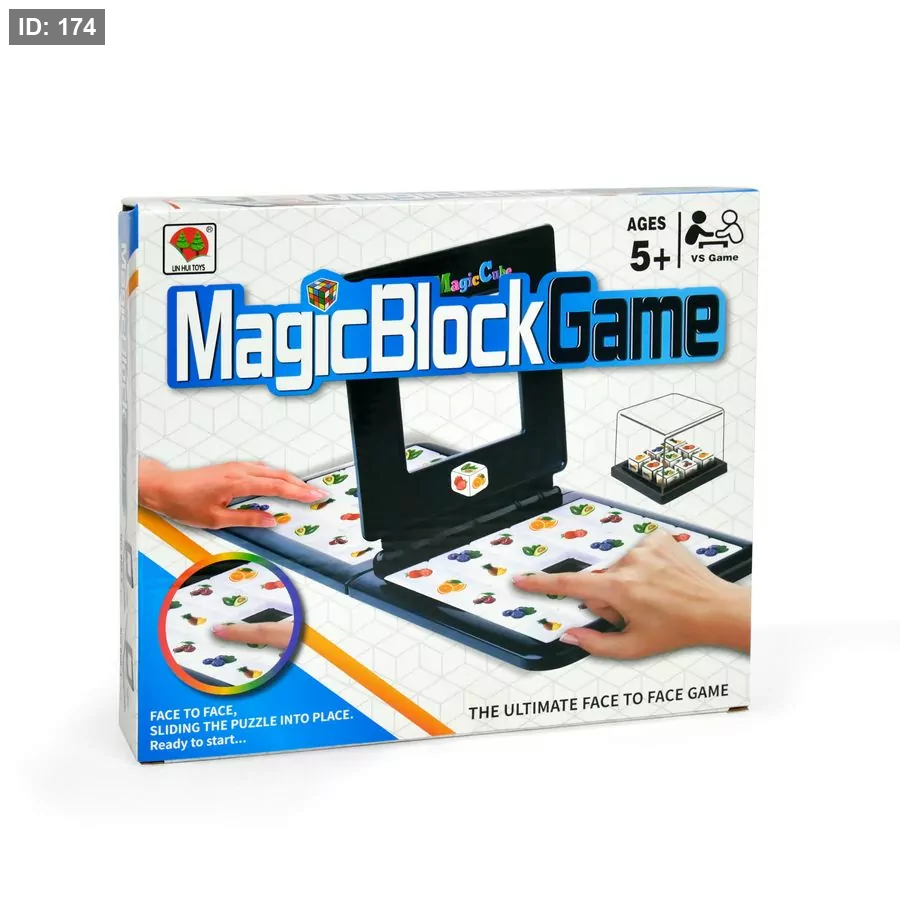 لعبة Magic Block Game هي لعبة ألغاز سريعة الوتيرة مصممة لشخصين. الهدف هو إعادة ترتيب المربعات الملونة على لوحة اللعب الخاصة بك لتتطابق مع النمط الذي تم إنشاؤه عشوائيًا بواسطة هزاز المكعبات. اللاعب الذي يكمل النمط بشكل صحيح أولاً يفوز بالجولة.