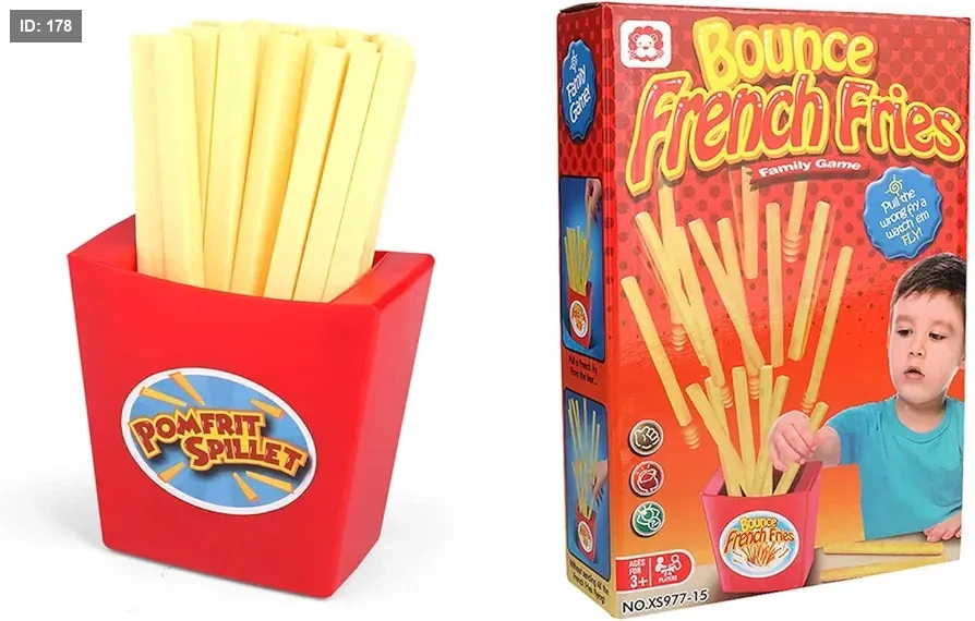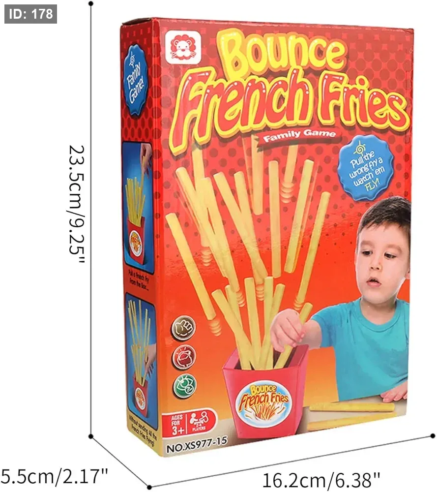 لعبة "باونس فرنش فرايز" (Bounce French Fries) هي لعبة حظ وحركة عائلية شهيرة حيث يتناوب اللاعبون على سحب عيدان البطاطس المقلية من العلبة. الهدف هو تجنب سحب "البطاطس" الخاطئة التي تؤدي إلى قفز كل البطاطس المقلية الأخرى فجأة من الصندوق. اللاعب الذي يجعل البطاطس تتطاير يعتبر خاسراً.
