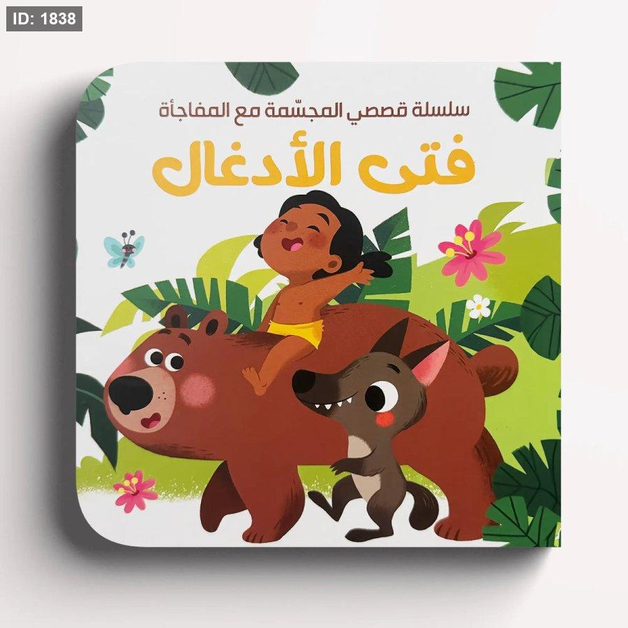 تظهر هذه الصورة كتابا من مجموعة "سلسلة قصصي المجسمة مع مفاجأة"، يضم قصة الرداء الأحمر الصغير، وبياض الثلج، وفتى الأدغال.