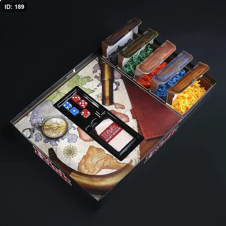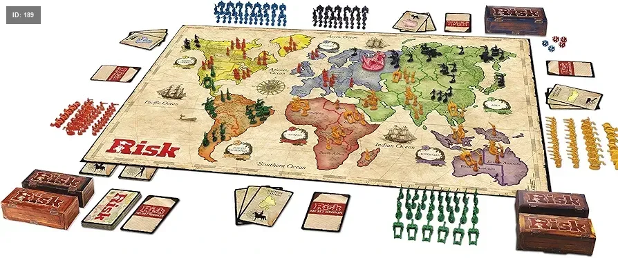 آلية اللعب: يحصل اللاعبون على قوات إضافية في بداية كل دور بناءً على عدد المناطق التي يسيطرون عليها، أو القارات بأكملها، أو من خلال مقايضة مجموعات من بطاقات الإقليم. تعتمد نتائج الهجوم والدفاع على رميات النرد.