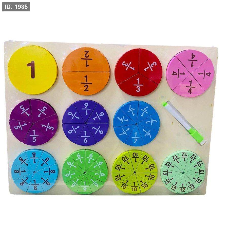 هذا المنتج عبارة عن لوحة تعليمية خشبية للأطفال من نوع منتسوري لتعليم الكسور.