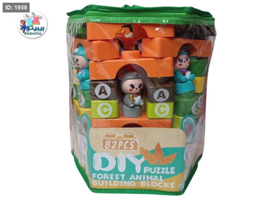 - محتويات إضافية: تحتوي على قطع بأشكال حيوانات الغابة، حروف (مثل حرف A و C)، وقطع أخرى متنوعة.