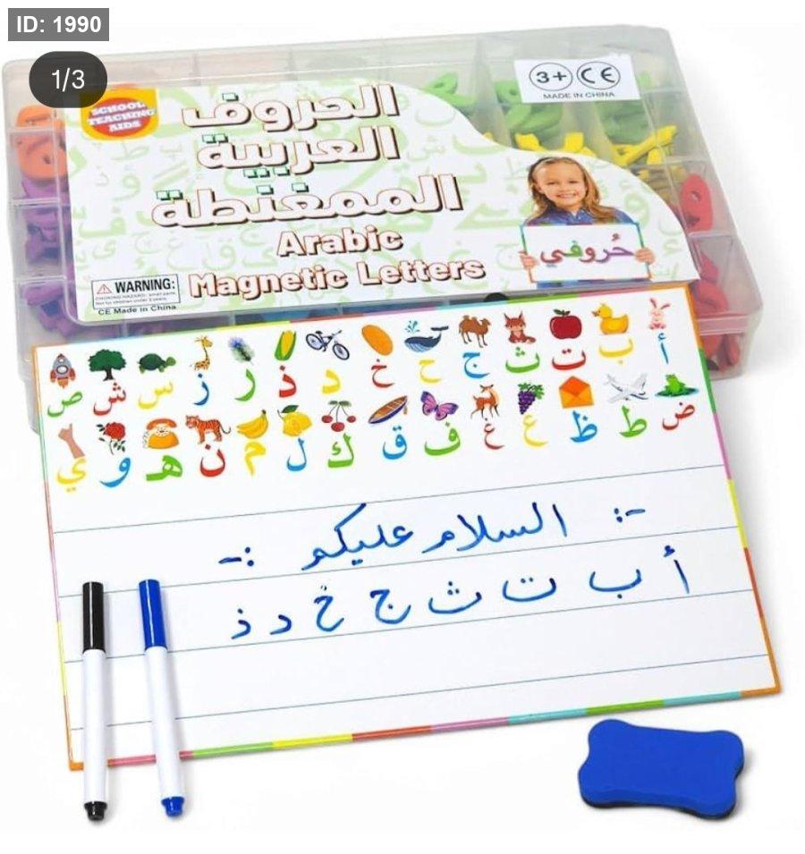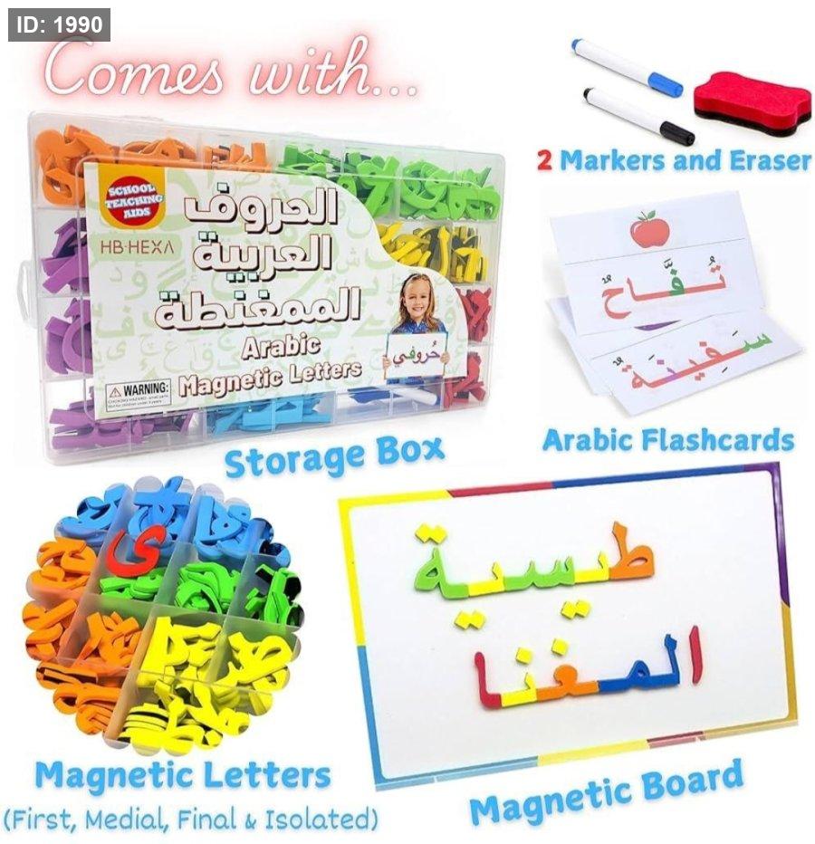 - المكونات: يحتوي الصندوق على تشكيلة متنوعة من الحروف المغناطيسية المتينة لتعلم الكلمات والجمل.