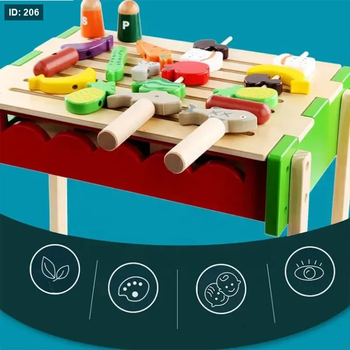 تساعد اللعبة طفلك في التعرف على الألوان والمواد الغذائية المستخدمة في الشواء وتجعله يعيش تجربة الشواء بنفسه.
