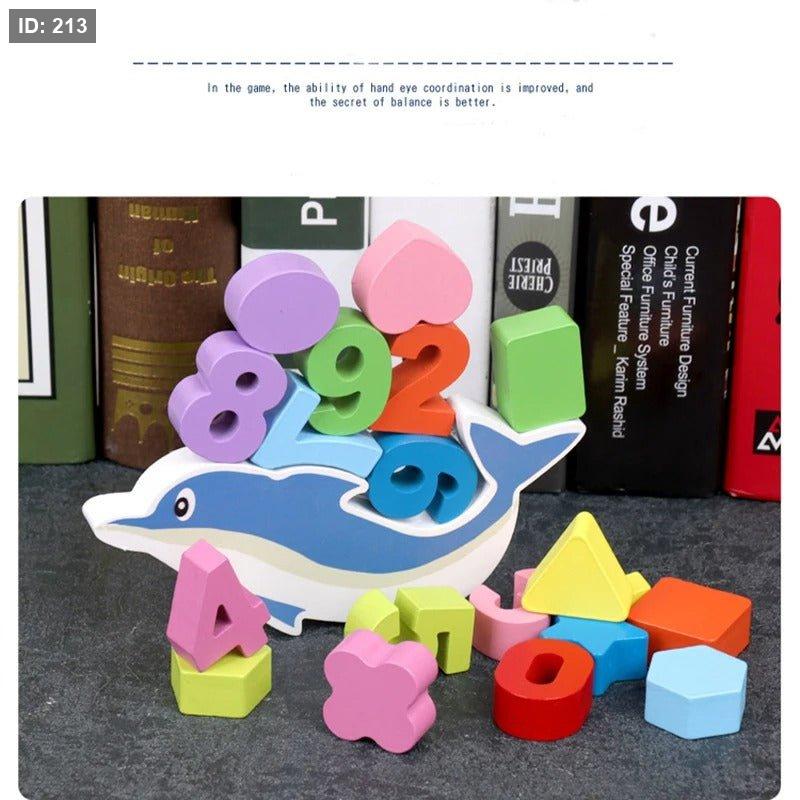 الوظيفة: هي لعبة تعليمية مصممة لتعزيز التوازن والتنسيق والتعرف على الأرقام والأشكال لدى الأطفال. تتضمن تكديس كتل ملونة بأرقام وأشكال مختلفة على قاعدة الدولفين المتأرجحة.