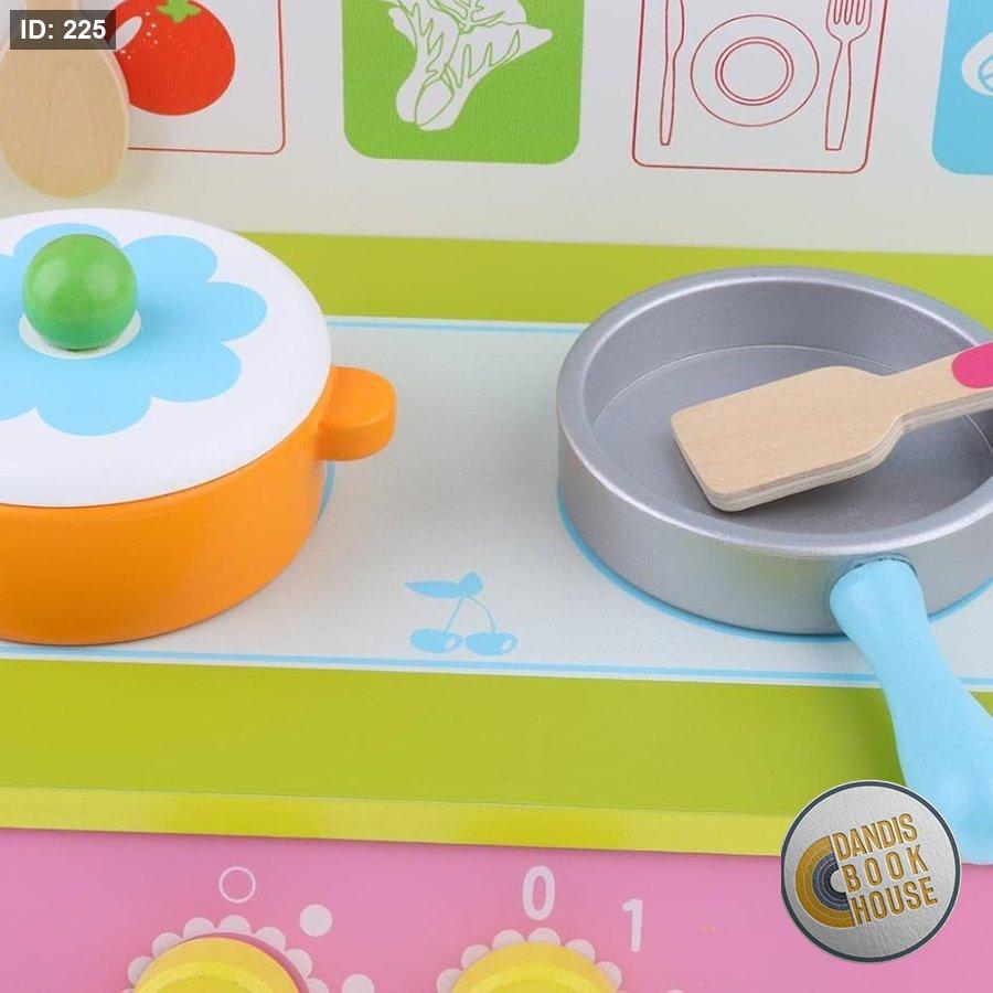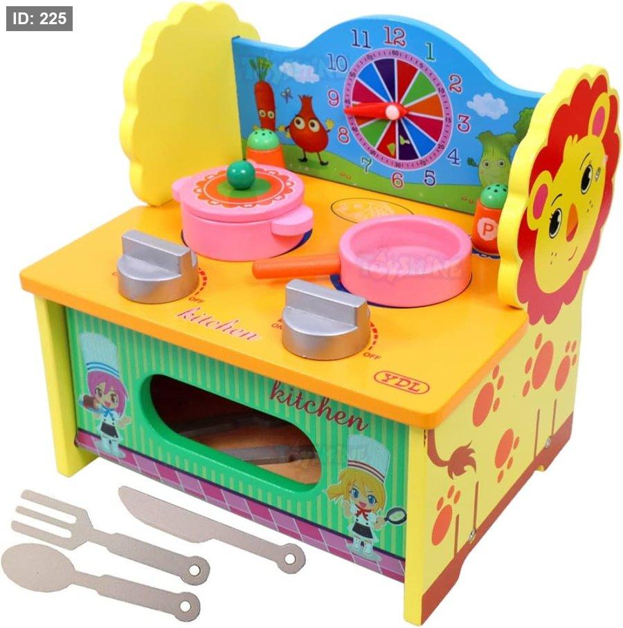 لعبة المطبخ الخشبية هذه هي مجموعة ألعاب تظاهرية مصممة للأطفال الصغار.