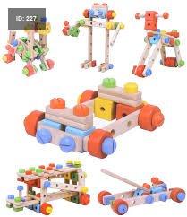 المحتويات: تحتوي المجموعة على 68 قطعة من الخشب الأملس عالي الجودة، بالإضافة إلى أدوات فك وتركيب مثل مفك خشبي ومفتاح إنجليزي خشبي.