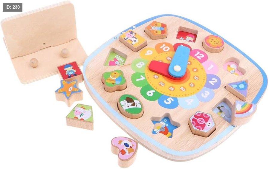 الوظيفة التعليمية: تساعد على تعلم الأشكال والألوان والتعرف على الوقت من خلال وضع الكتل في الأماكن المخصصة لها.