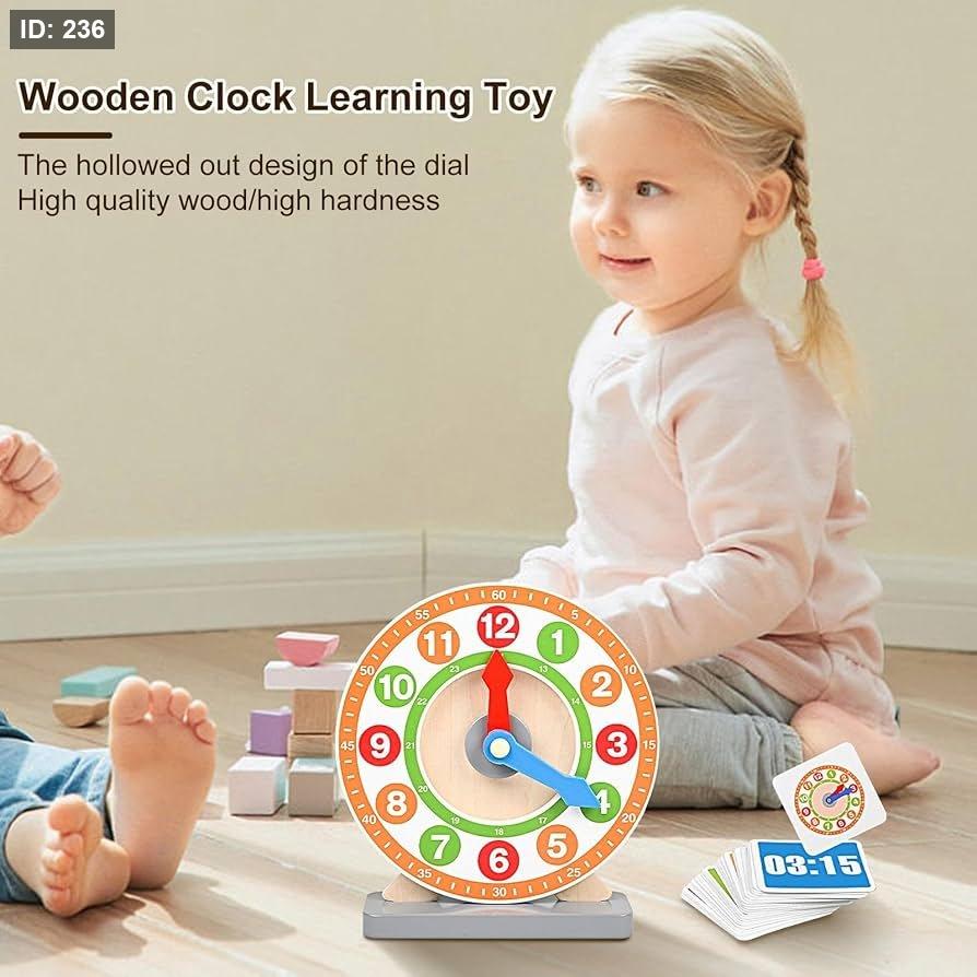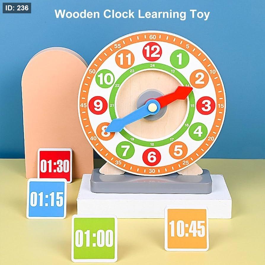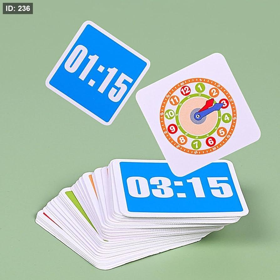- المحتويات: تتضمن الساعة نفسها وبطاقات تعليمية إضافية لوقت محدد (مثل 12:45).