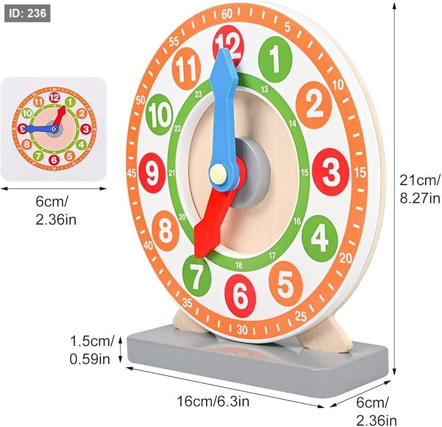 - التصميم: تتميز الساعة بأرقام كبيرة وواضحة (1-12) وأرقام صغيرة إضافية (13-24) لمساعدة الأطفال على فهم تنسيقات الوقت المختلفة.