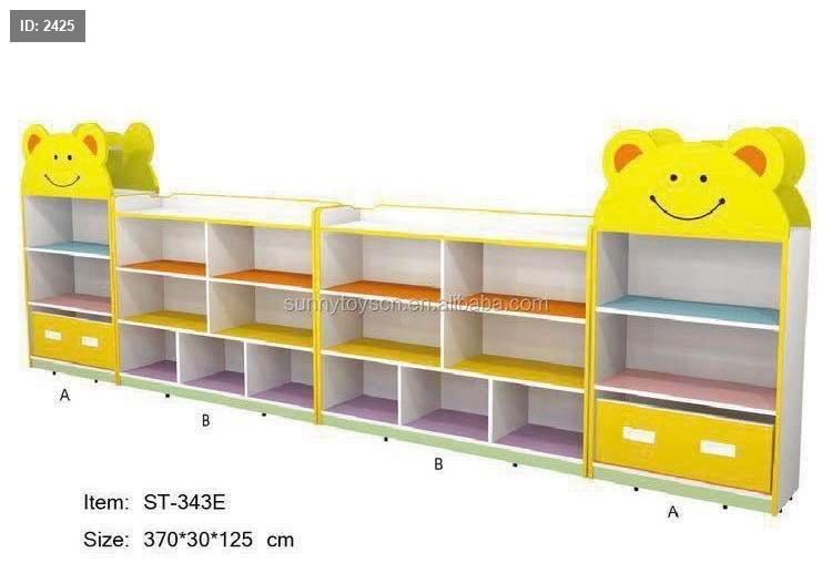 الخزانة الملونة مخصصة لتنظيم الألعاب والكتب في غرف الأطفال أو الحضانات، وتتميز بتصميم جذاب على شكل شخصيات كرتونية (مثل الدب الضاحك).
