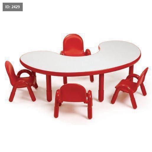 الطاولة المخصصة للأطفال، والتي تظهر في الصورة، هي طاولة تعليمية مصممة خصيصاً لرياض الأطفال وفصول التعليم المبكر. تتميز بتصميمها العملي الذي يتخذ شكل نصف دائرة أو حدوة حصان، مما يسمح للمعلم بالجلوس في المنتصف والتفاعل بسهولة مع مجموعة صغيرة من الأطفال.