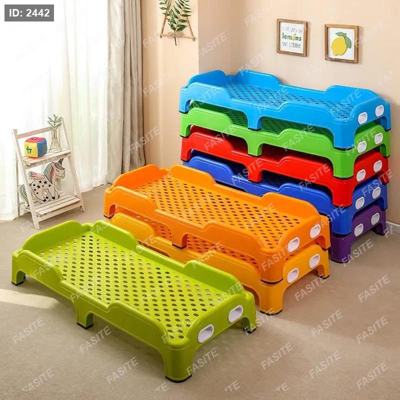 سرير أطفال بلاستيكي مصمم خصيصاً لرياض الأطفال والحضانات. يتميز هذا النوع من الأسرة بكونه قابلاً للتكديس فوق بعضه البعض لتوفير المساحة عند عدم الاستخدام، ومصنوع من بلاستيك عالي الجودة ومتين.