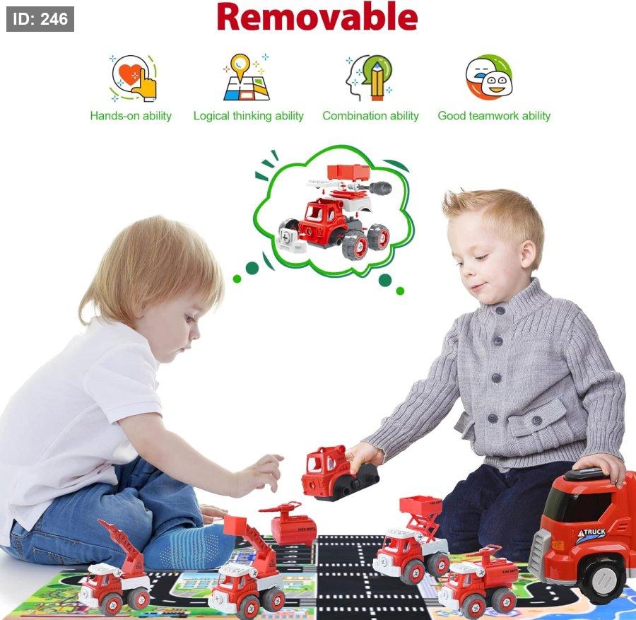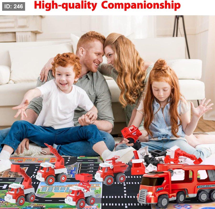 هذه شاحنة إطفاء ذات طابقين قابلة للفك، وهي لعبة شائعة مصممة لتنمية مهارات الأطفال الحركية والإبداعية.