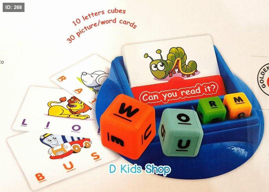 تتكون هذه اللعبة التعليمية من مجموعة من المكعبات والبطاقات المصممة لمساعدة الأطفال الذين تتراوح أعمارهم بين 3 سنوات وما فوق على تعلم الحروف الأبجدية الإنجليزية وتكوين الكلمات.