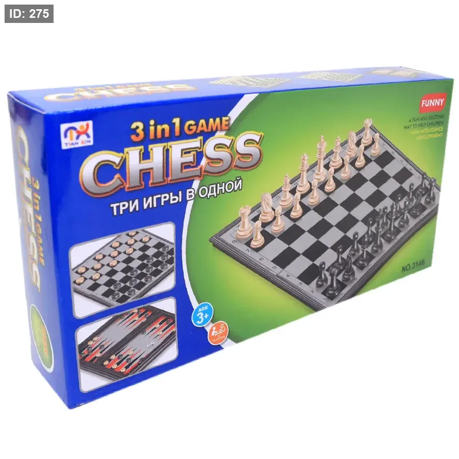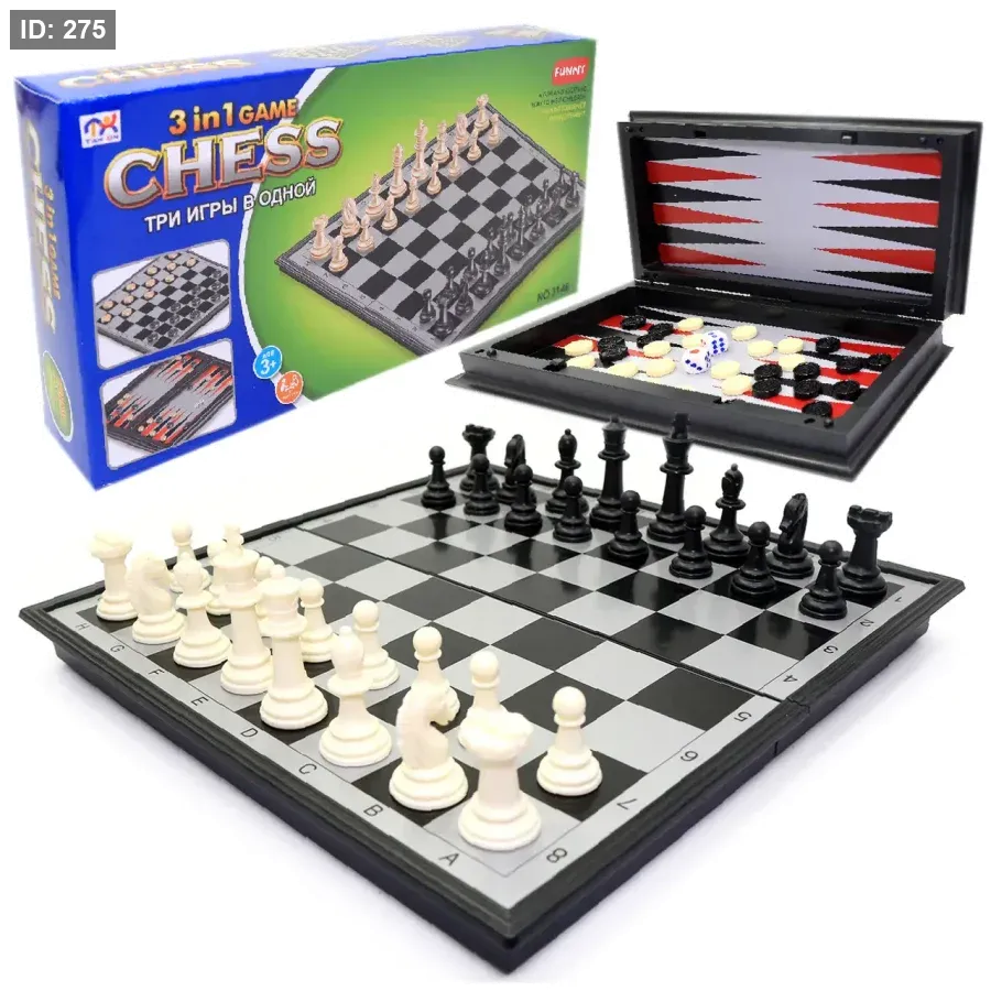 مجموعة ألعاب ثلاث في واحد، تحتوي على ألعاب الشطرنج والضامة (الداما) والطاولة (النرد).