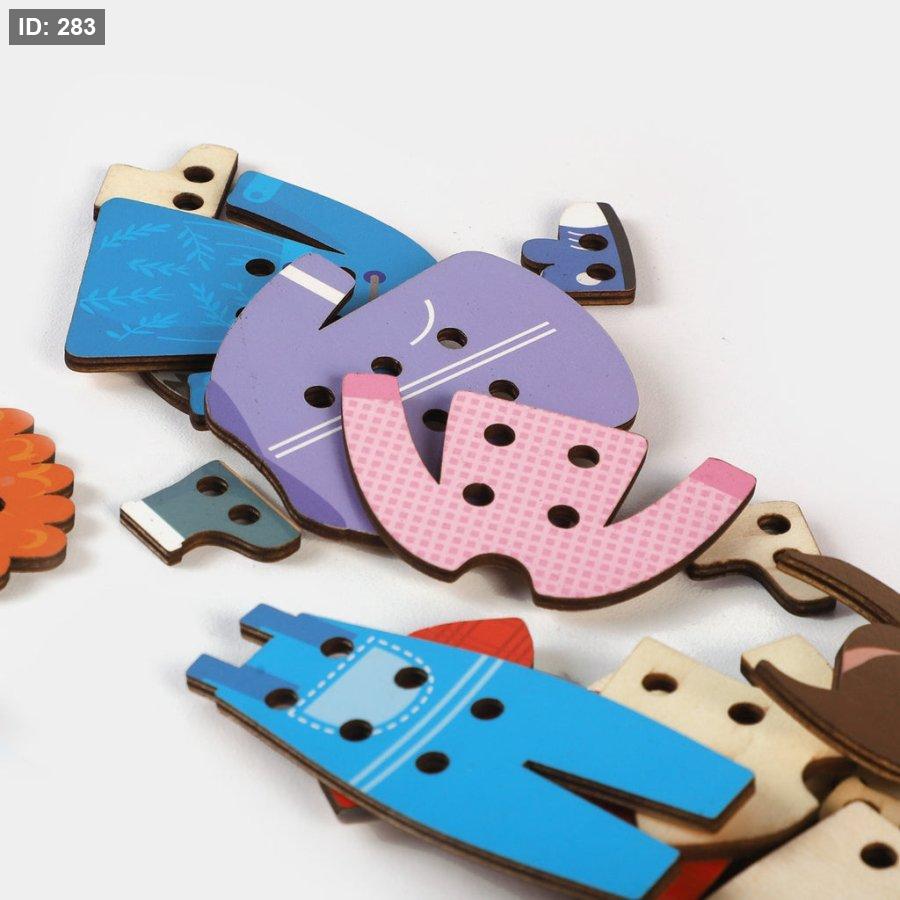 صندوق لعبة تعليمية للأطفال يُدعى "Personages Threading Plate" معروض على رف في متجر. [1.1]