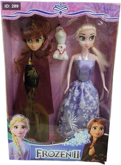 إلسا وآنا من فيلم ديزني الشهير "فروزن" (Frozen). تم تصميمها لتبدو مشابهة للشخصيات الأصلية، ولكن مع اختلافات طفيفة في جودة التصنيع والتفاصيل مقارنة بالمنتجات الرسمية من شركات مثل ديزني أو ماتيل.