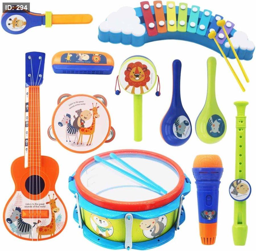 توضح الصورة مجموعة الآلات الموسيقية للأطفال.