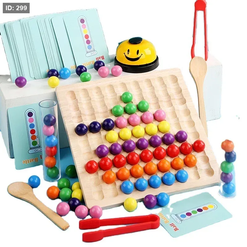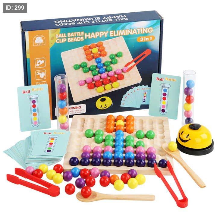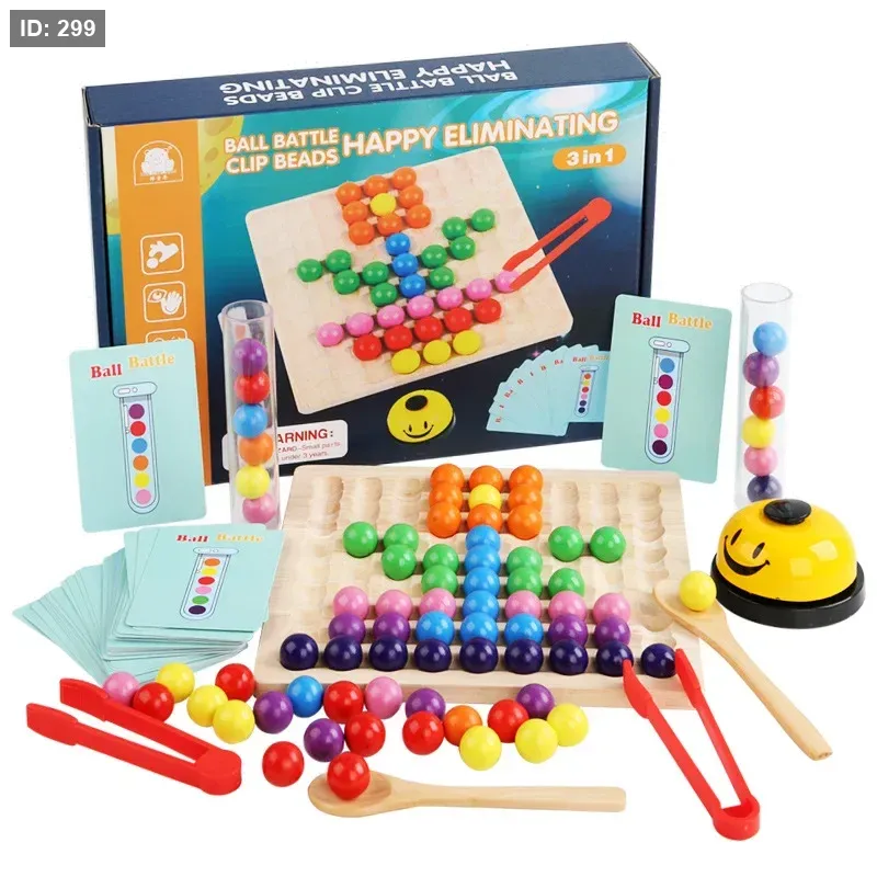 لعبة "Ball Battle Clip Beads Happy Eliminating 3 in 1" هي لعبة تعليمية خشبية مصممة لمرحلة ما قبل المدرسة.