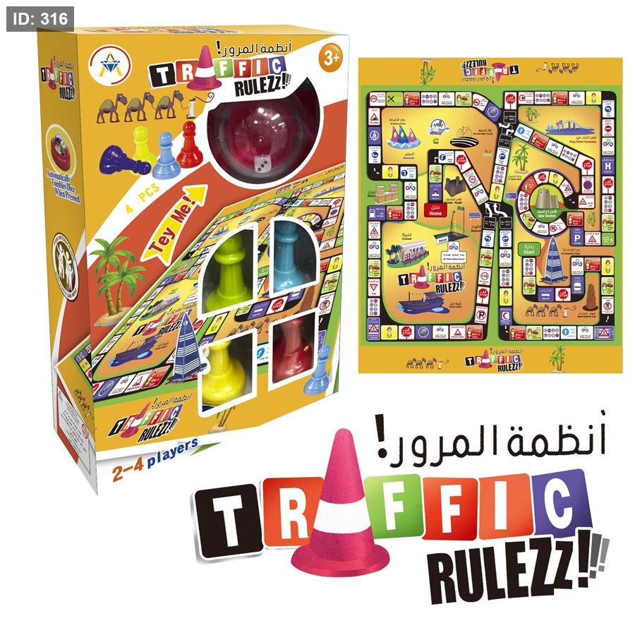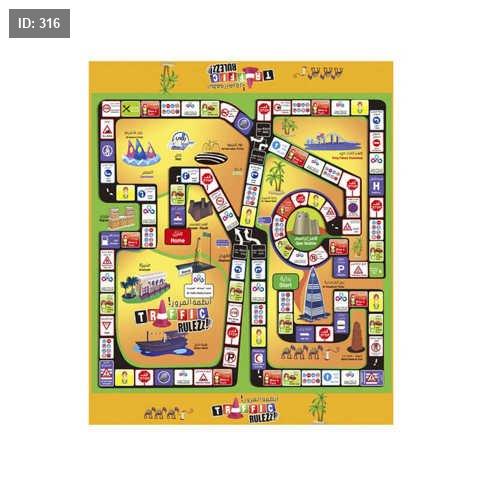لعبة لوحية تعليمية تسمى "Traffic Rulezz!" أو "أنظمة المرور". تم تصميم اللعبة لتعليم الأطفال قواعد المرور والسلامة على الطرق بطريقة تفاعلية.