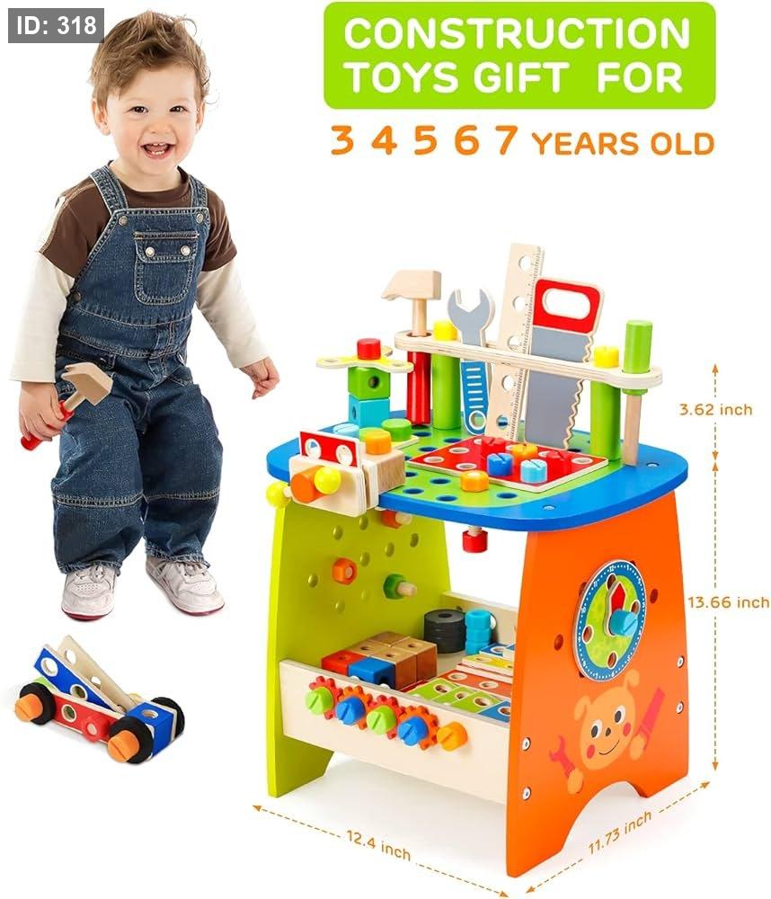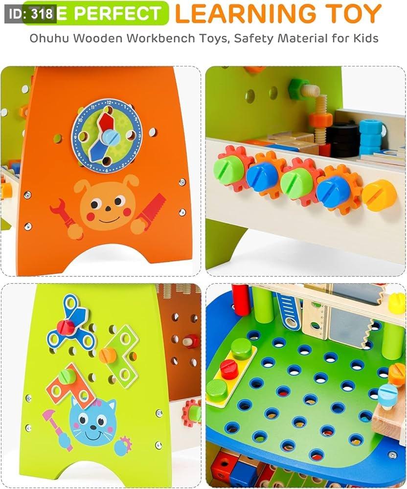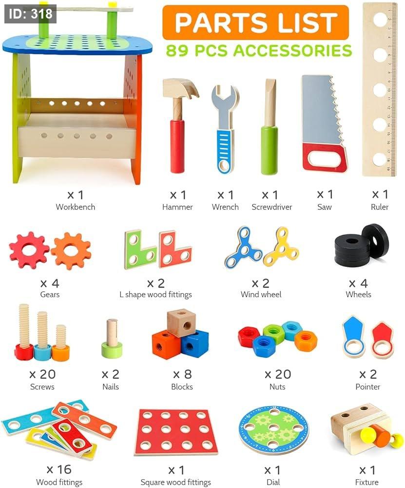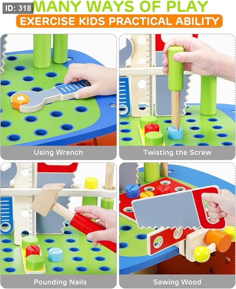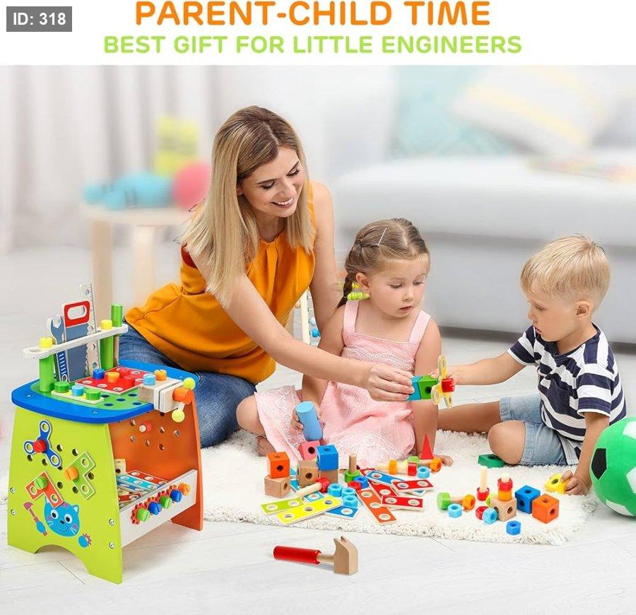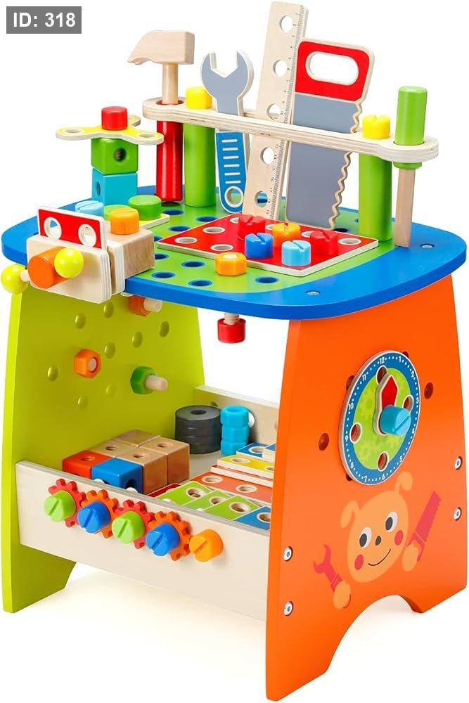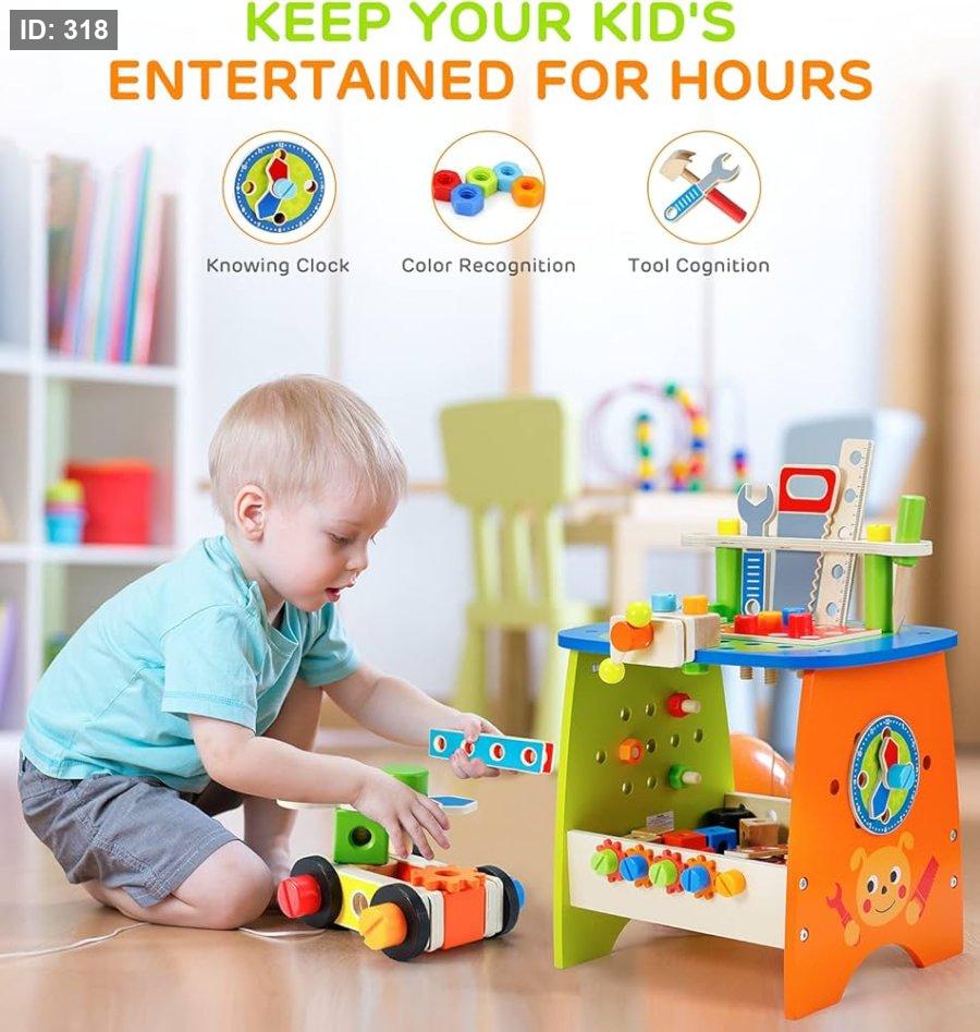 طاولة أدوات خشبية للعب (ورشة عمل) مخصصة للأطفال.
