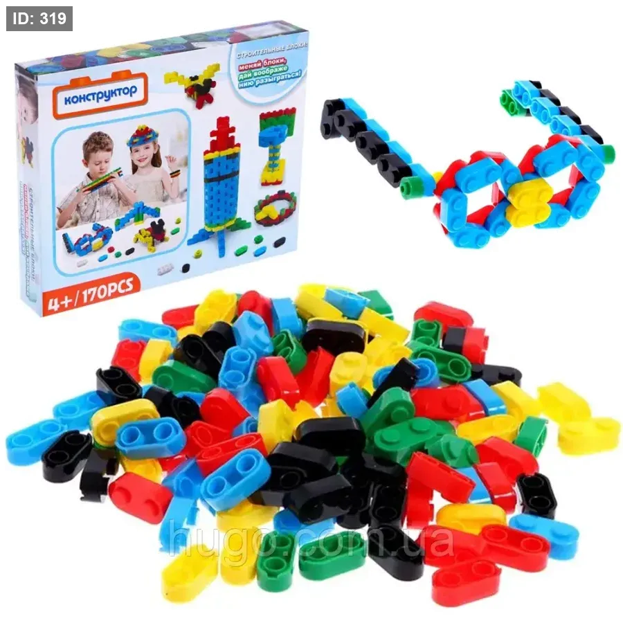 مجموعة مكعبات البناء المعروضة في الصورة هي لعبة بناء تعليمية متعددة القطع. تأتي هذه المجموعة عادةً مع 170 قطعة، وتوصف بأنها مناسبة للأطفال من سن 4 سنوات فما فوق.