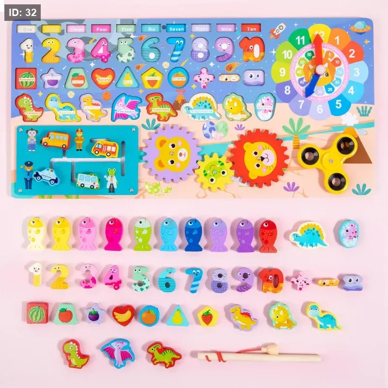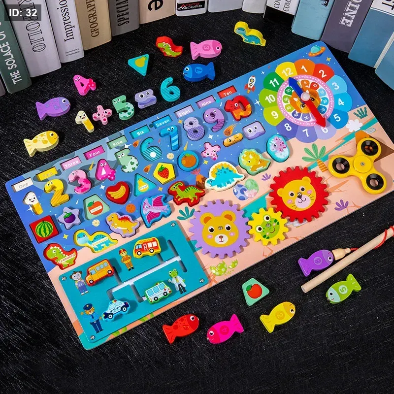 متعدد الأنشطة: يضم أنشطة متنوعة مثل صيد الأسماك المغناطيسي، وفرز الأشكال والألوان، والتعرف على الأرقام والحروف الأبجدية، وألغاز المطابقة (كالحيوانات أو المركبات)، وساعة تعليمية، مما يوفر تجربة تعليمية شاملة.