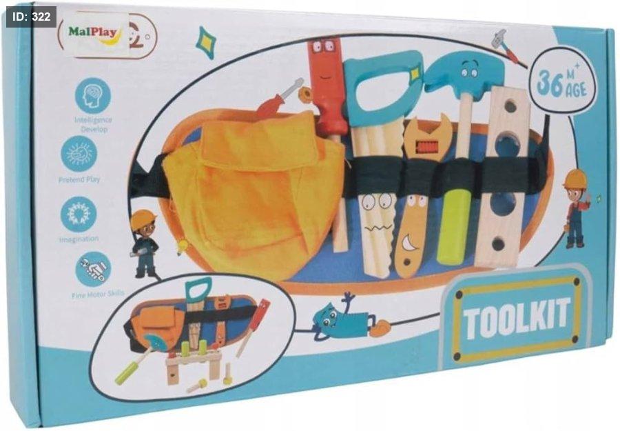 مجموعة أدوات خشبية، تستهدف الأطفال الذين تزيد أعمارهم عن 36 شهرًا (3 سنوات). مصممة لتشجيع اللعب التخيلي وتنمية المهارات الحركية الدقيقة.