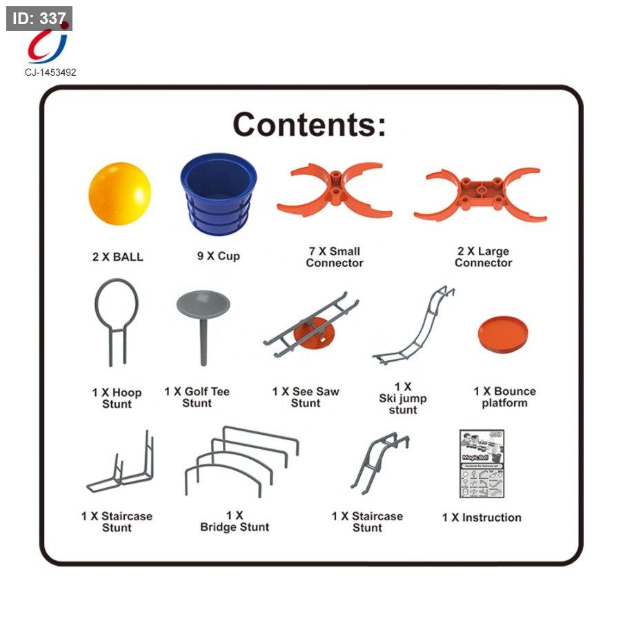 المحتويات: 33 قطعة بلاستيكية لبناء المسار وكرات
