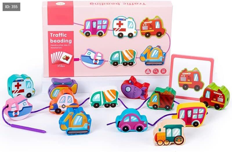 هذه مجموعة خرز خشبية على شكل مركبات مرورية من "كلاسيك وورلد".