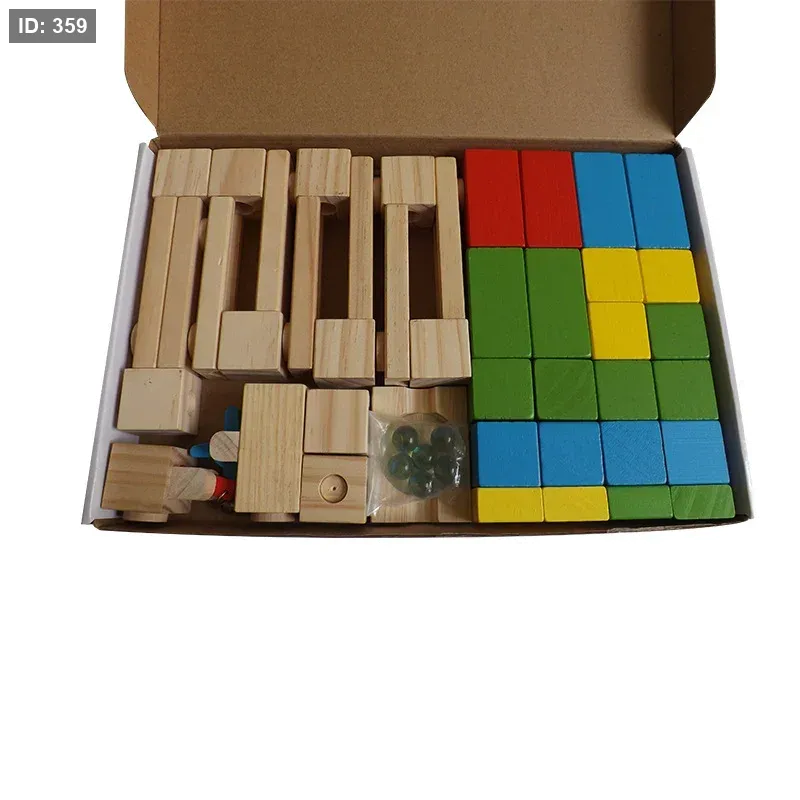 مجموعة مكعبات بناء رخامية خشبية معروضة في عبوة.