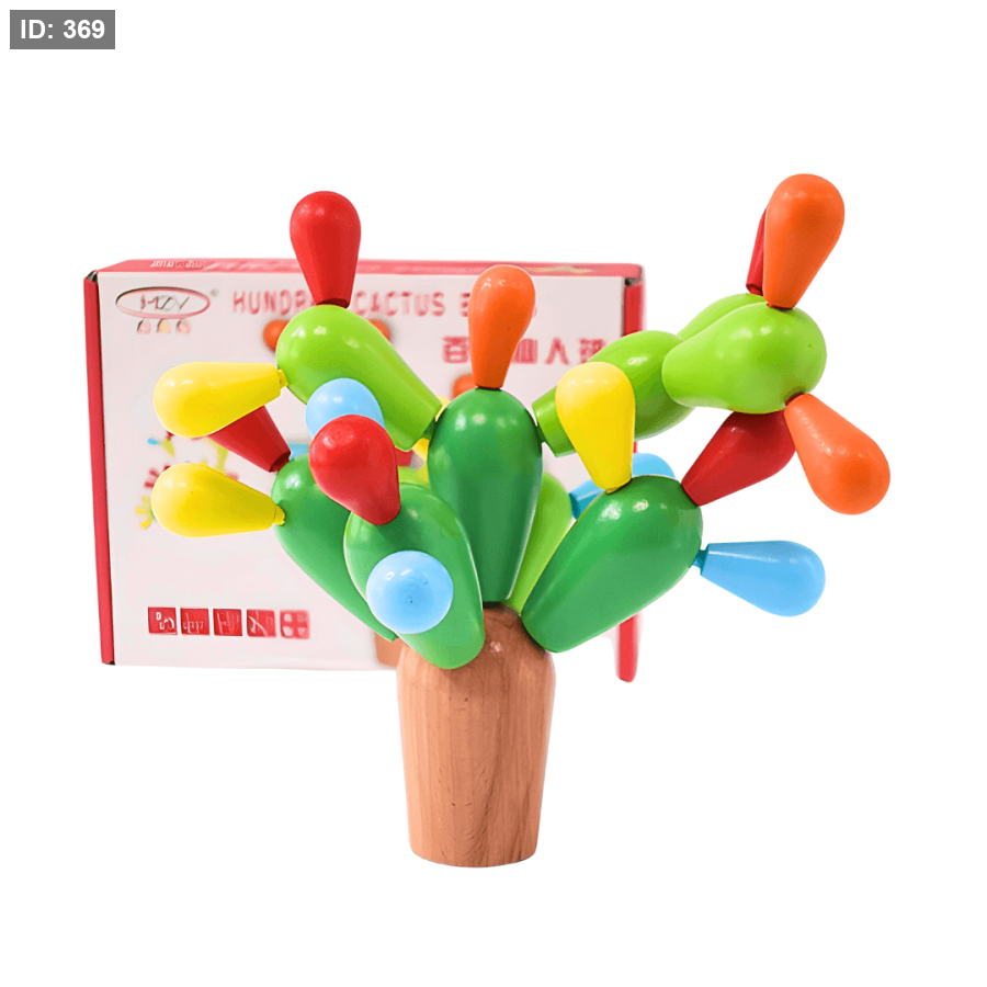 تتكون من قطع خشبية بألوان وأشكال مختلفة يمكن تجميعها لإنشاء أشكال صبار متنوعة.