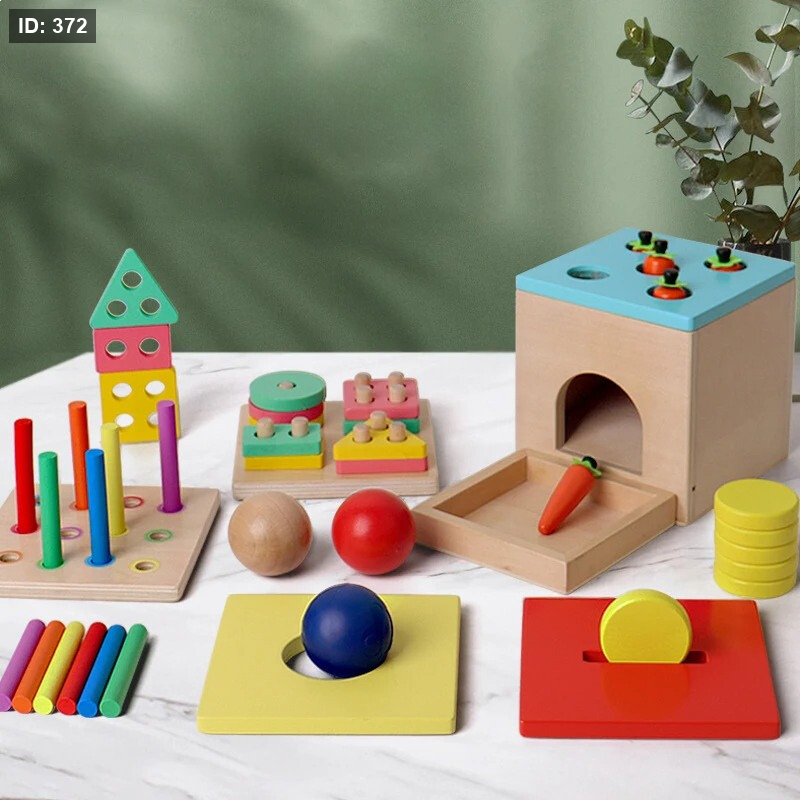 هذه لعبة تعليمية خشبية للأطفال من نوع مونتيسوري 5 في 1.