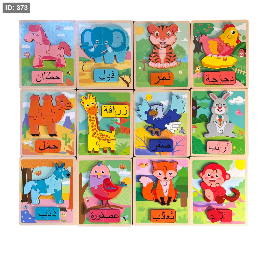 تساعد هذه الألعاب التعليمية على تنمية المهارات الحركية الدقيقة والتعرف على الحيوانات والكلمات العربية المرافقة لها.