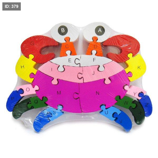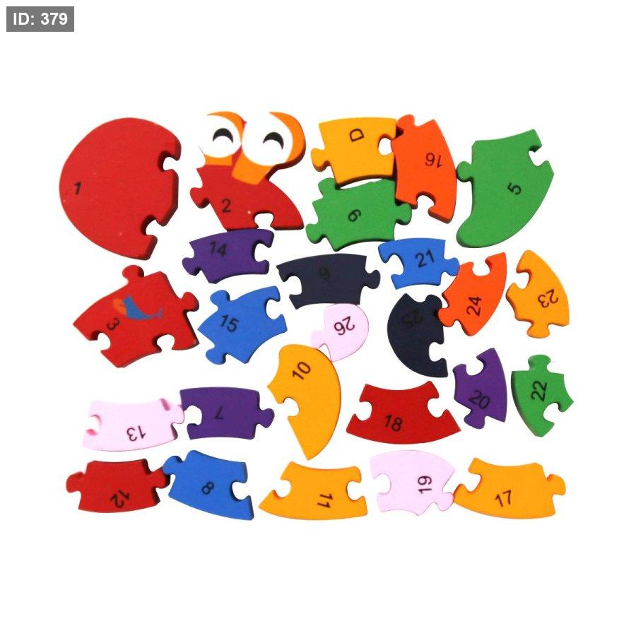 هذا لغز خشبي للأطفال على شكل حيوان (قد يكون أخطبوط أو سمكة أو حلزون) يحتوي على قطع مرقمة لتعليم الأرقام.