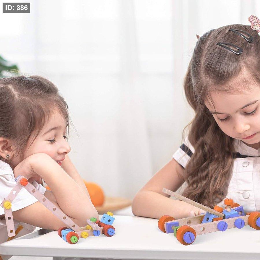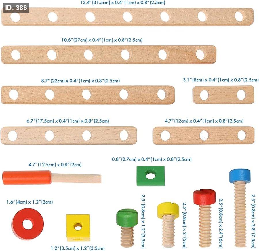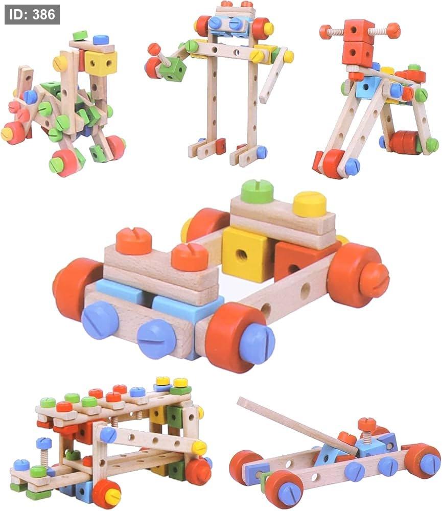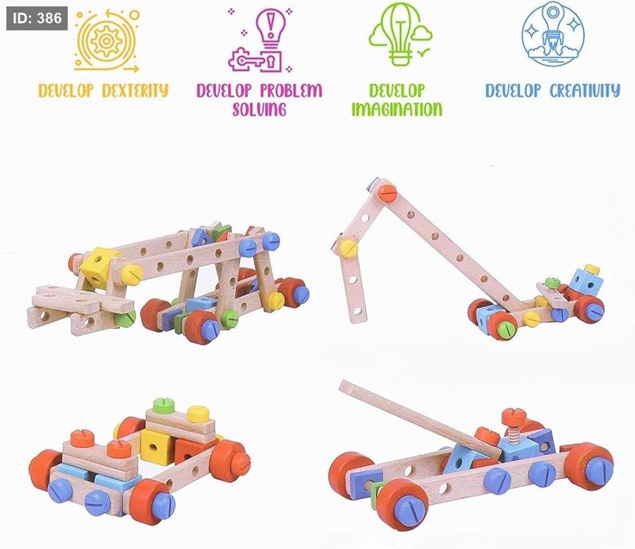 مجموعة بناء خشبية: تحتوي هذه المجموعة، التي يبلغ مقاسها 22.83 × 16.54 × 11.81 بوصة، على 79 قطعة من مكعبات البناء الخشبية، بما في ذلك البراغي ومفك البراغي. يمكن للأولاد والبنات استخدام أدوات البناء هذه لبناء سياراتهم ودراجاتهم وطائراتهم المروحية وغيرها الكثير من الأشكال بشكل واقعي باستخدام قطع المكعبات الملونة والعجلات.
